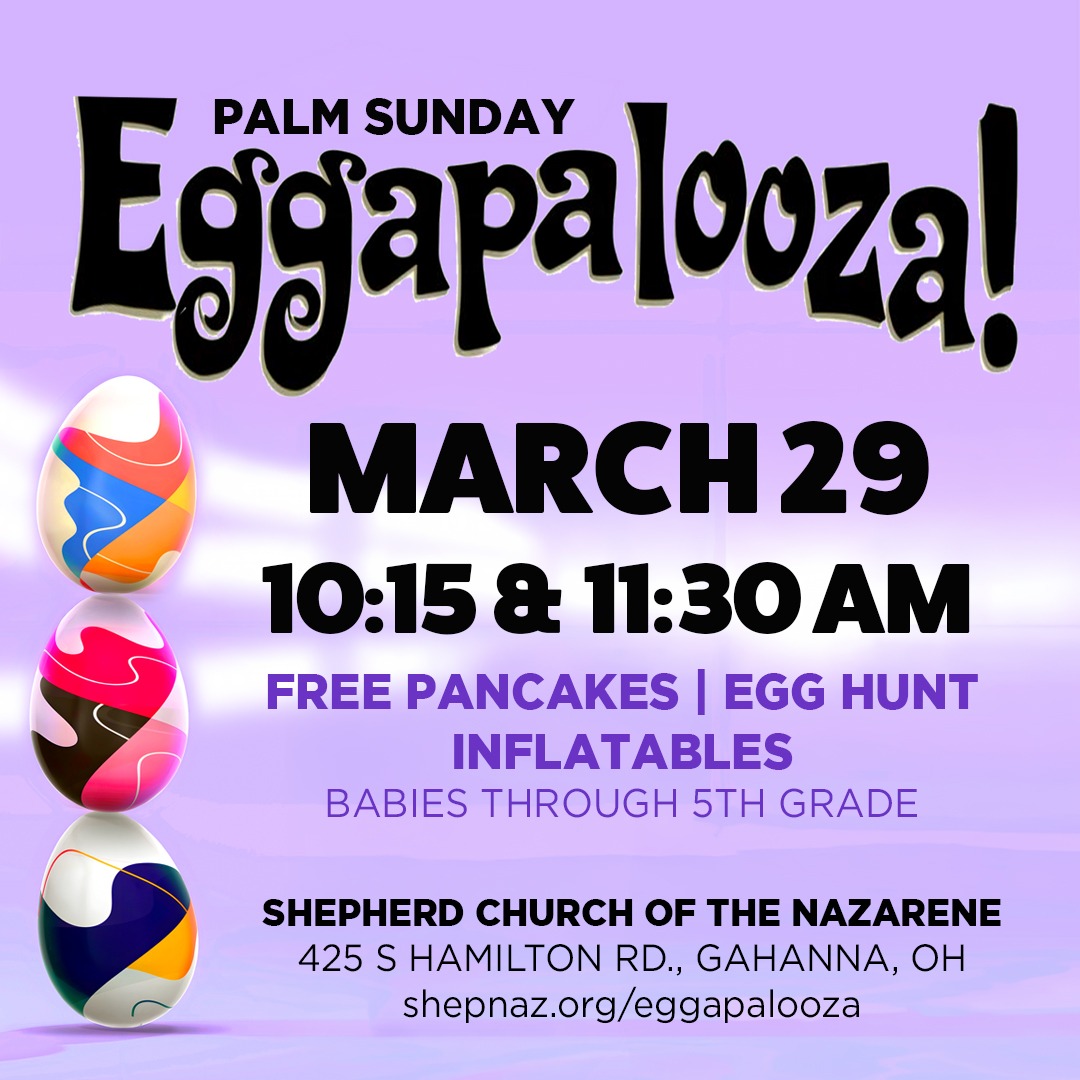 Date: March 29Time: One Family Worship Service at 9:00 am | Eggapalooza 10:15 & 11:30 amLocation: Shepherd Church, Gahanna 📅 March 29, 2026 ⏰