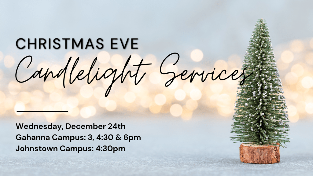 December 24 4:30 pm (Johnstown Campus) Come enjoy a time of traditional Christmas music, the re-telling of the Christmas story, and candlelight!