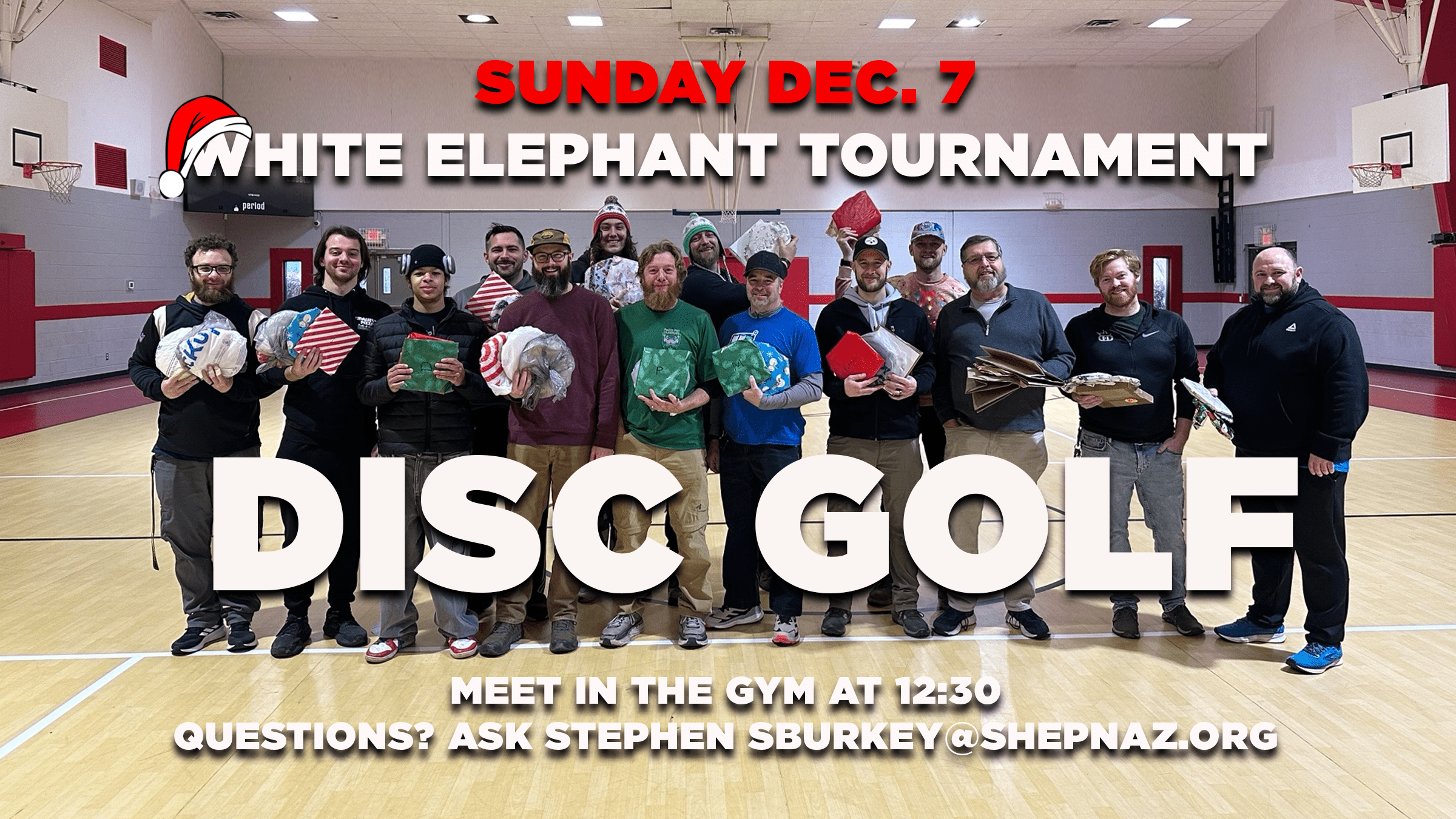 SUNDAY || DEC. 7 || 12:30 pmMEET AT GAHANNA CAMPUS GYMJoin us in the gym at Shepherd for our annual Disc Golf White Elephant Tournament! Bring one putter,
